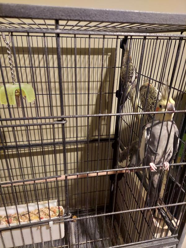 First day one cockatiel got stuck in it unable to get out due to narrow opening. Second day a different one...Horrified at what might have been the out come, I took a hacksaw blade and made that opening larger. The design is flawed. Danger risk. If I had been gone for any length of time they might have died.