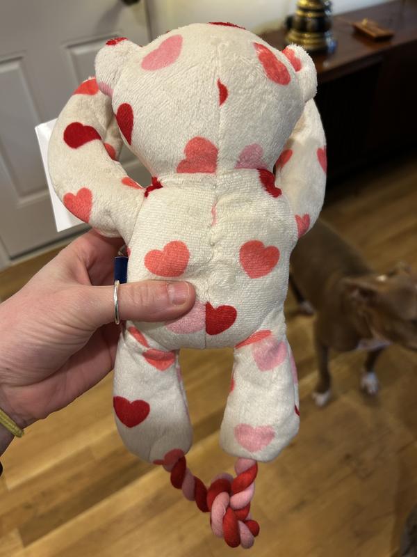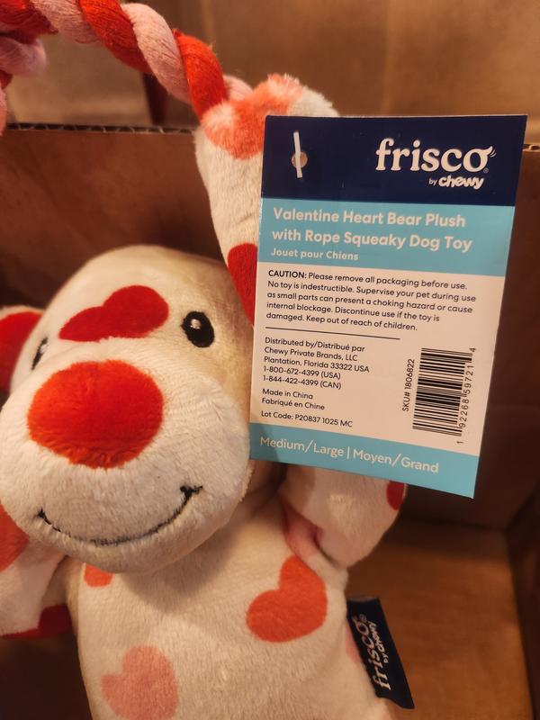 Frisco Valentine Heart Bear Plush with Rope Squeaky Dog Toy, Medium/Large