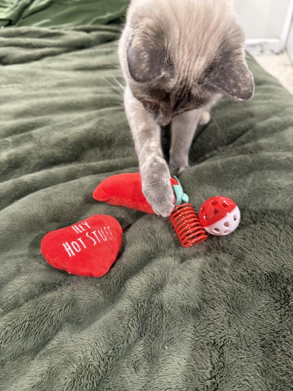 Frisco Valentine Hot Pepper Plush, Spring & Ball Variety Pack Cat Toy with Catnip, 4 count