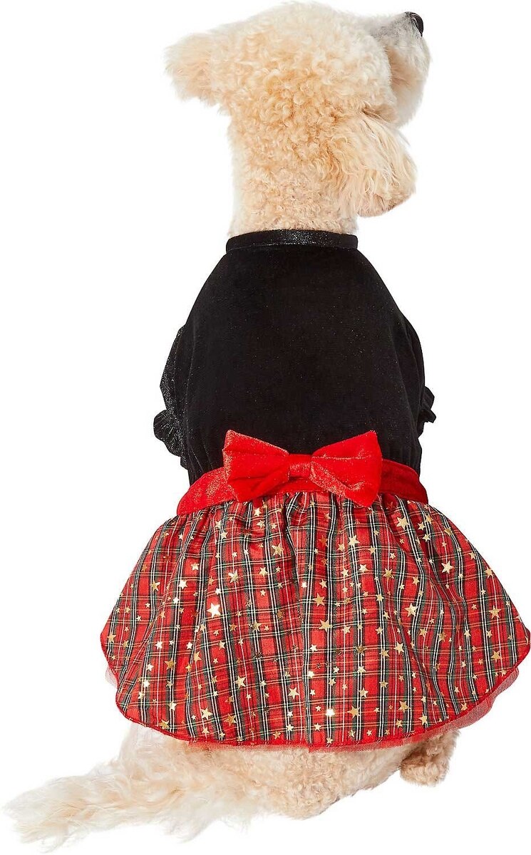 Frisco Velvet Dog & Cat Plaid Dress, X-Large