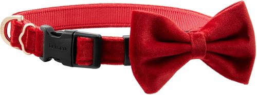 Frisco Velvet Dog Collar With Removable Velvet Bow, Red, SM - Neck: 10-14-in, Width: 5/8-in