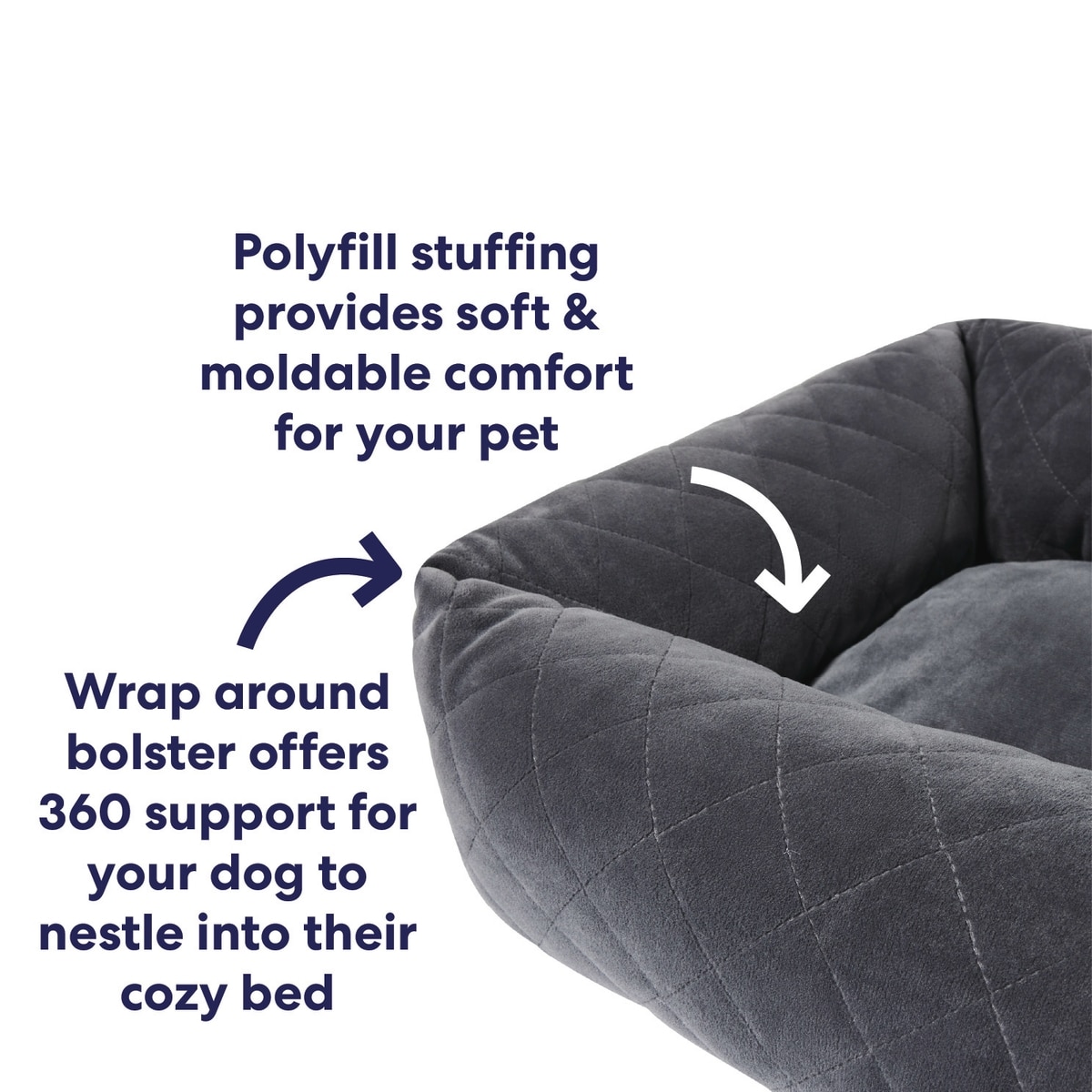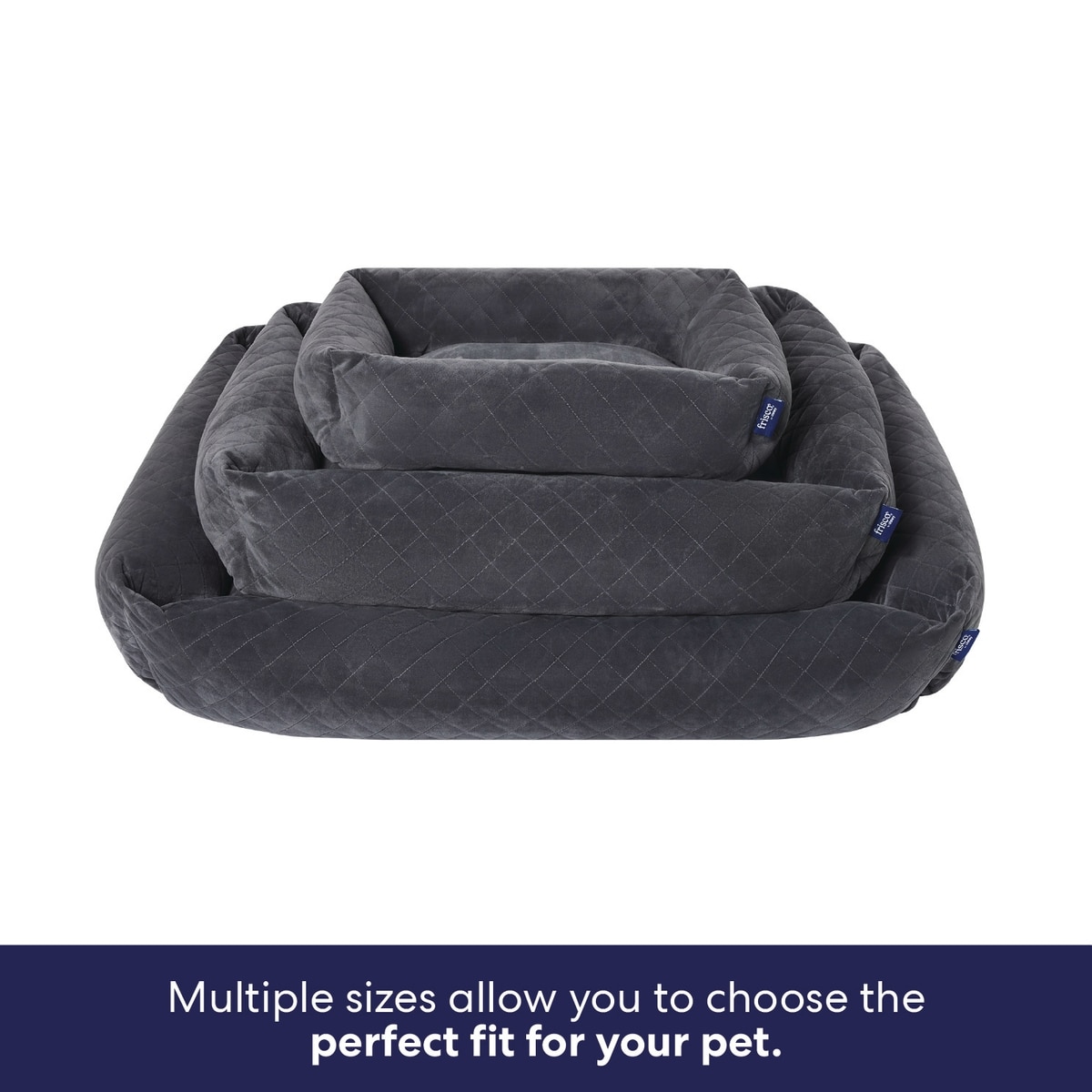 Frisco Velvet Quilted Bolster Cat & Dog Bed, Gray, Small
