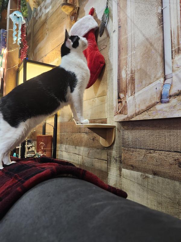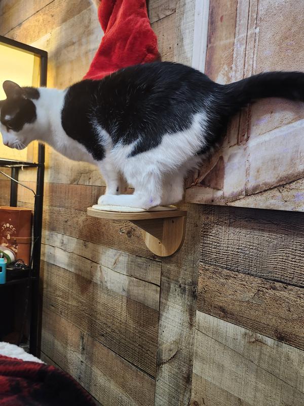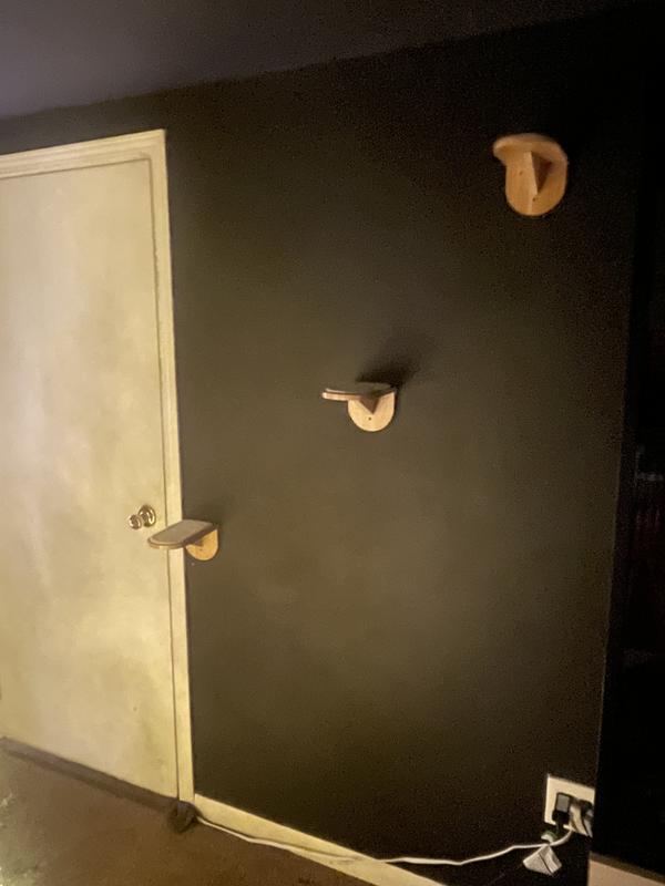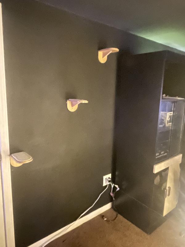 These little wall steps are a great addition to any cat wall. I used the to fill a space between an existing large shelf and a u-shaped carpeted wall lounger that