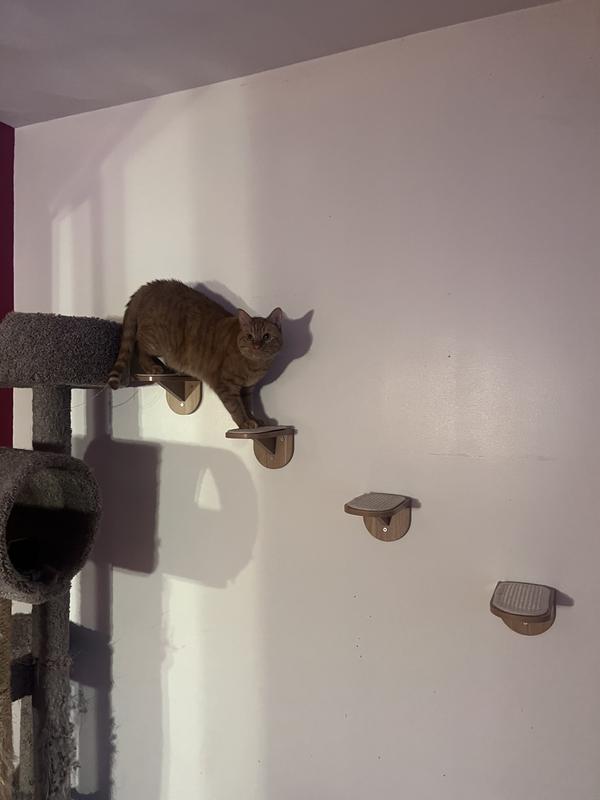 We installed these wall‑mounted cat steps for our curious kitty and couldn’t be happier! The four individual steps were easy to mount with the included hardware, and the sisal mats give great traction so our cat feels confident jumping from one step to the next. It transformed a plain wall into a fun climbing route, and now she uses it every single day to hop up to her favorite window perch. We love that the steps are versatile — we arranged them in a zig‑zag pattern that fits our space perfectly and encourages exercise and play. It’s been such a joy to watch her explore and stay active! Great quality for the price, and the install process was straightforward. Highly recommend if you want to create an engaging vertical space for your feline friend!