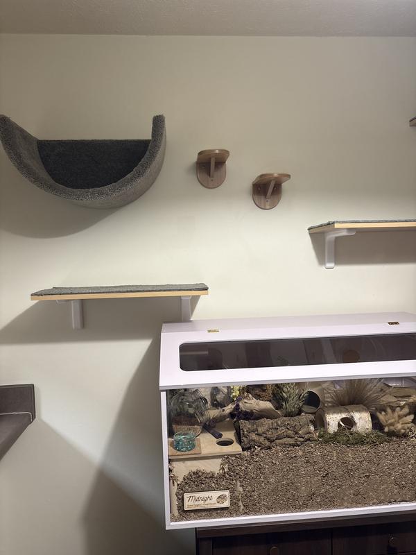 I love these cat shelves!! I chose these for the neutral color tone and I love the way they look in my living room! They're very sturdy with scratchpad grips for my baby Jack's safety. While not sure what they were at first, he quickly adapted! He's now obsessed with using them to climb onto the entertainment center to get away from his puppy brother! Will definitely be ordering more for the rest of the house!