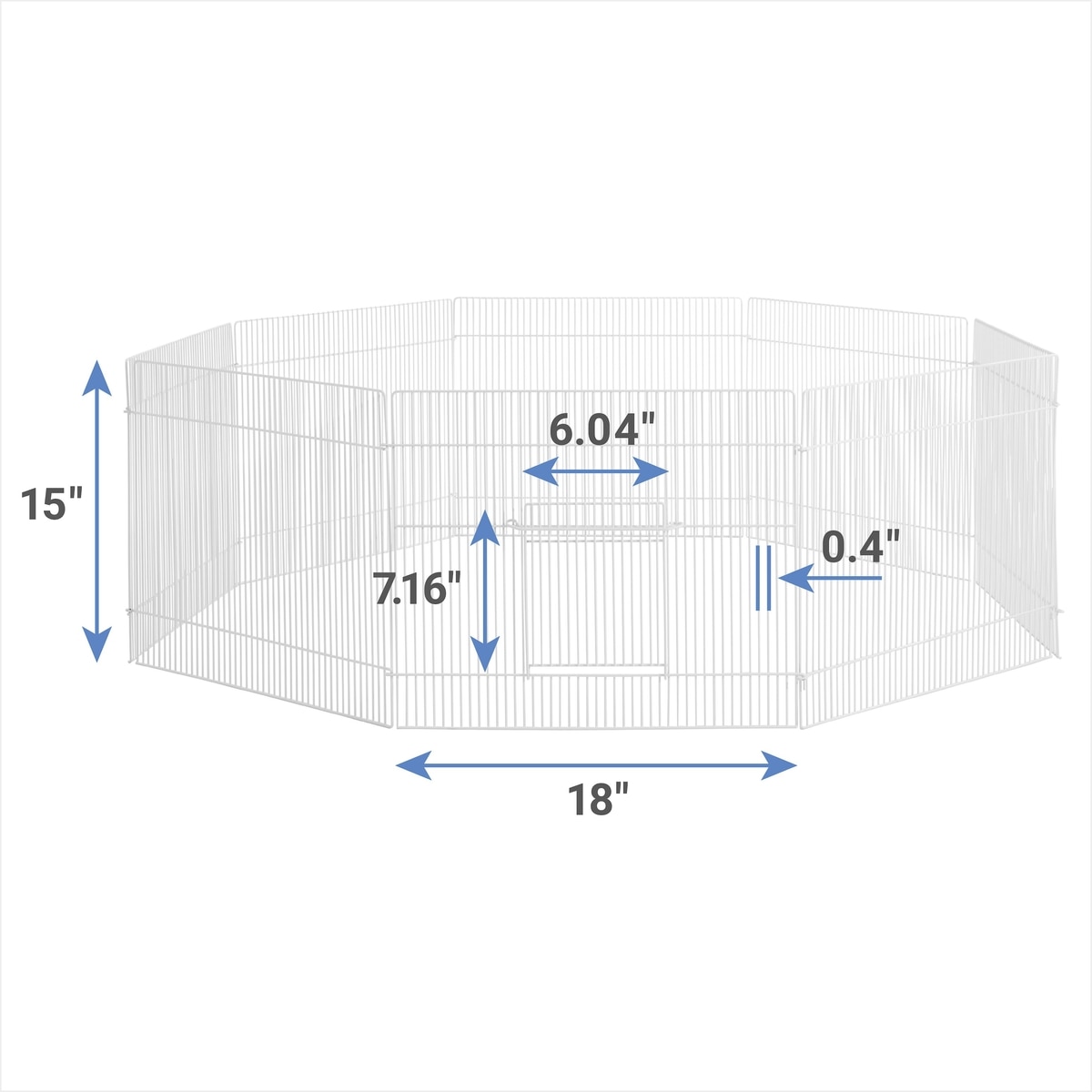 There are 8 panels included, each measuring 18 inches wide by 15 inches tall. When set up as a square, the square footage is 9 ft².