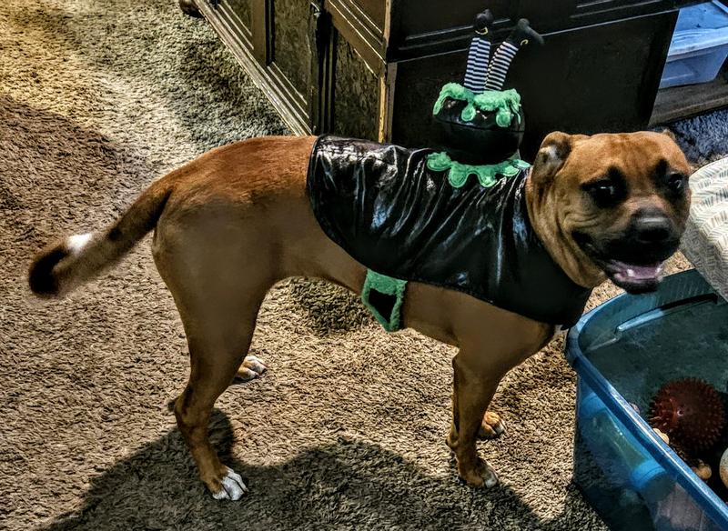 Frisco Witch Cauldron Ride-On Dog Costume with detachable Plush Toy, Large