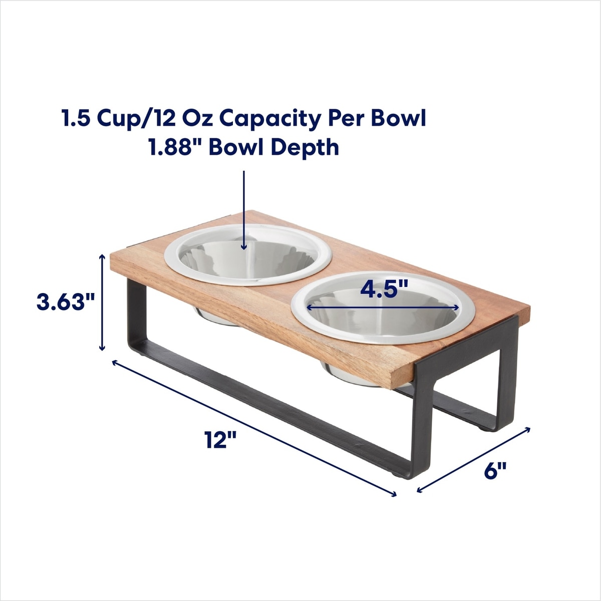 Frisco Wooden Bars Dog & Cat Double Bowl Diner, Black, Small: 1.5 cup