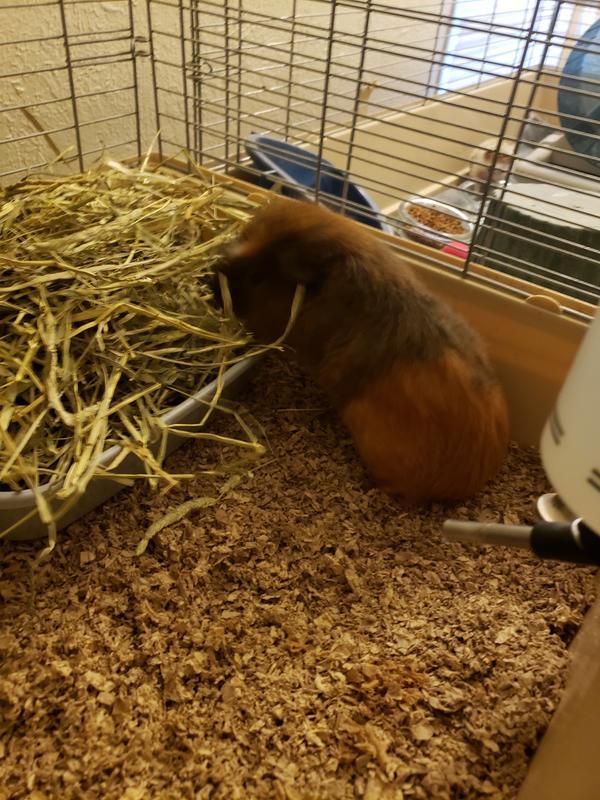 The toy is small enough for the guinea pigs to chew, but big enough for the two of them to share. Love the color! Not sure what happened to the wooden ball inside, that disappeared quickly!