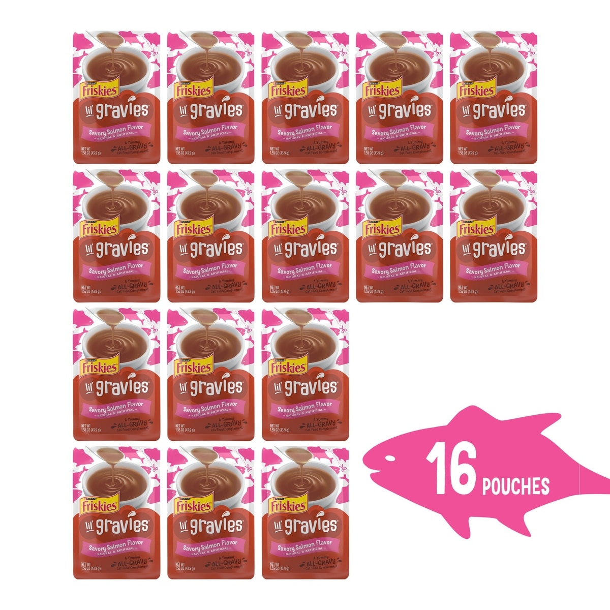 Friskies Lil' Gravies Savory Salmon Flavor Cat Food Complement, 1.55-oz pouch, case of 16
