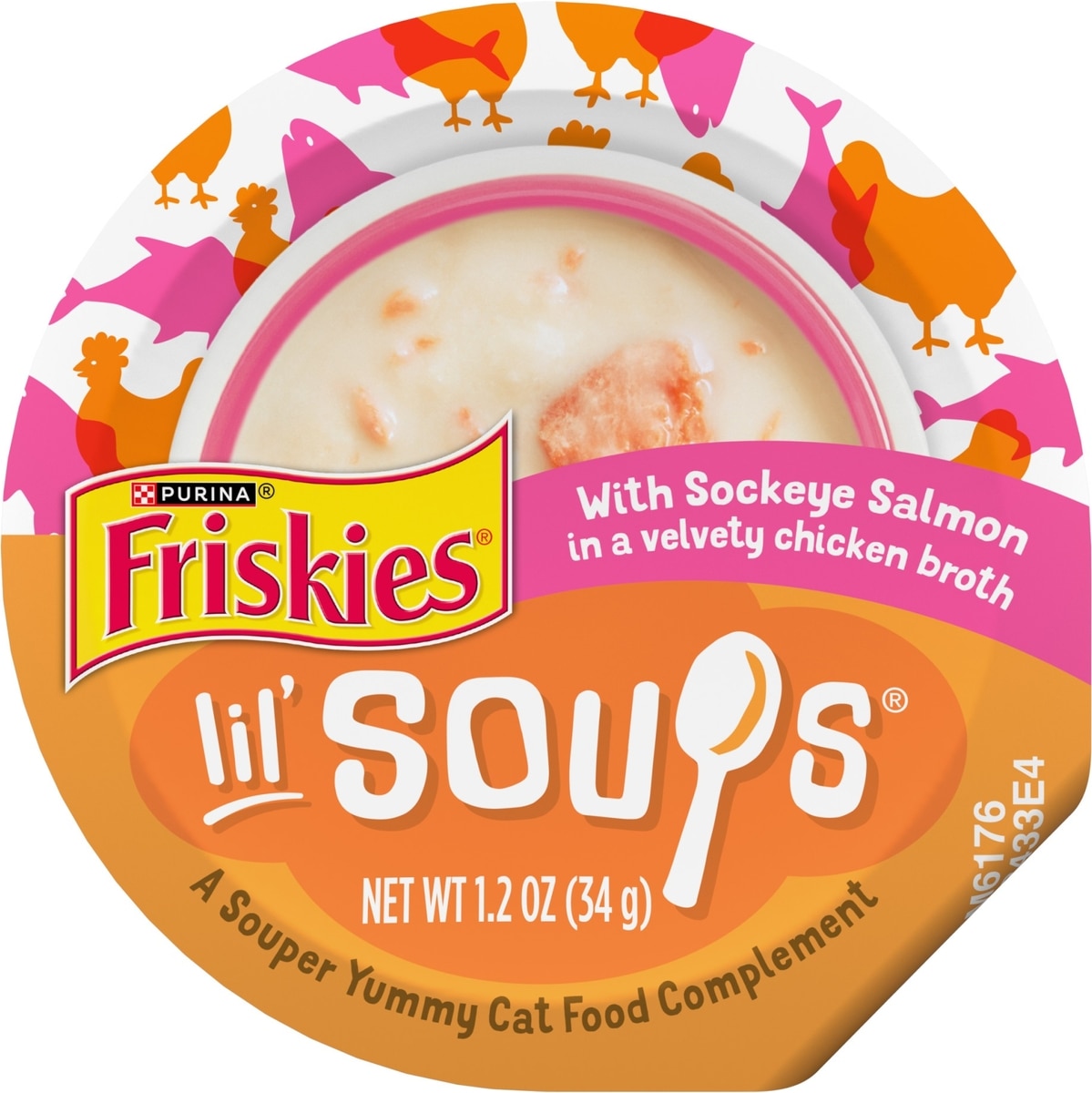 - Friskies Lil' Soups with Flaked Chicken in a Velvety Tuna Broth Lickable Cat Food Topper, 1.2-oz tub, case of 8$8.80 Chewy Price$10.64 List Price$8.36 Autoship PricePromo, New Customers Only: Spend $49+, Get $20 eGift Card +1 deal