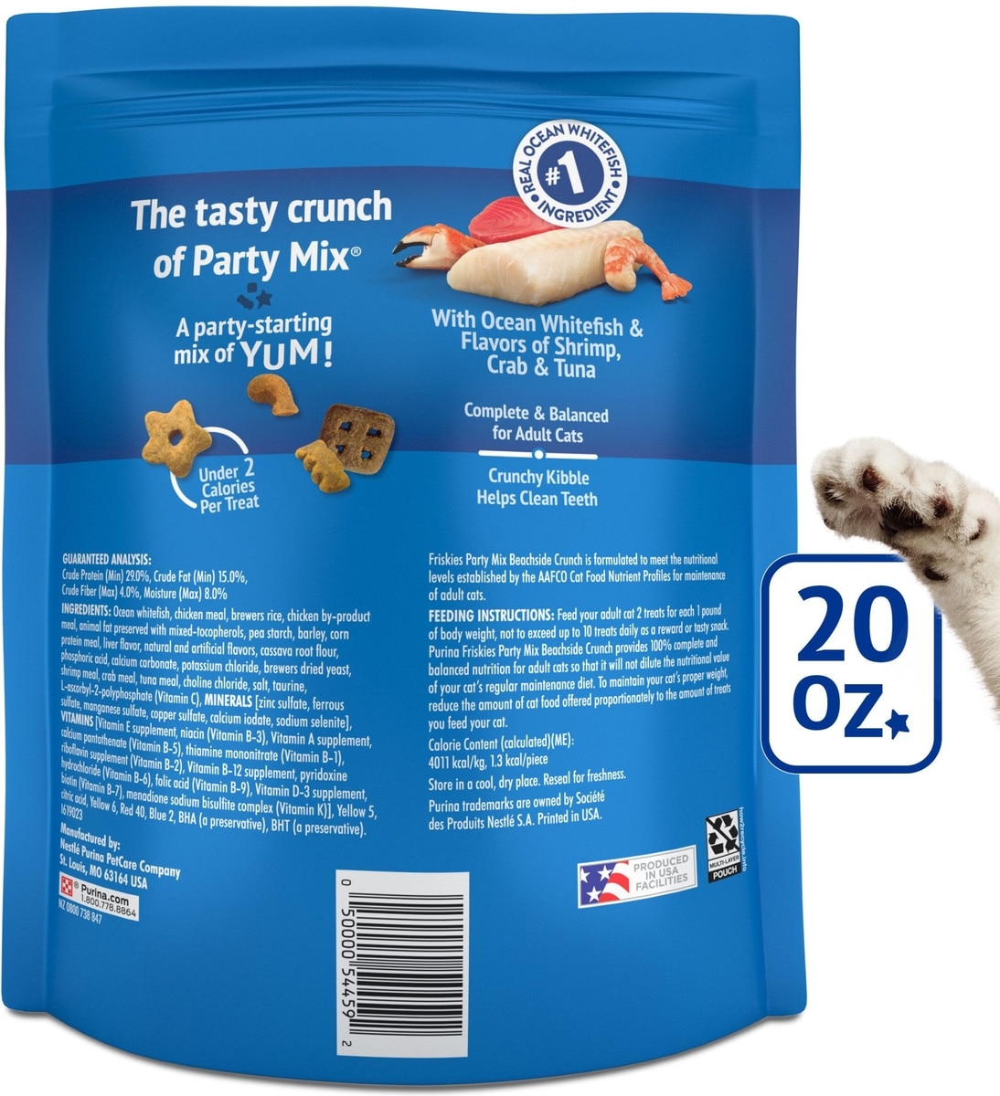 Friskies Party Mix Beachside Crunch Ocean Whitefish & Seafood Flavor Crunchy Cat Treats, 20-oz bag