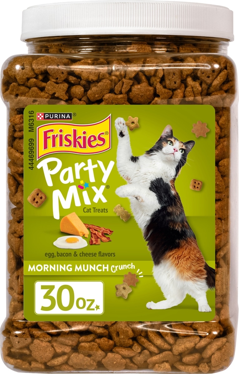 Friskies Party Mix Morning Munch Chicken, Bacon & Cheese Crunchy Cat Treats, 30-oz canister