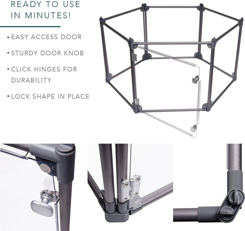 Front Row 6-Panel Transparent Panels & Aluminum Rods Foldable Dog & Cat Playpen, Charcoal/Clear