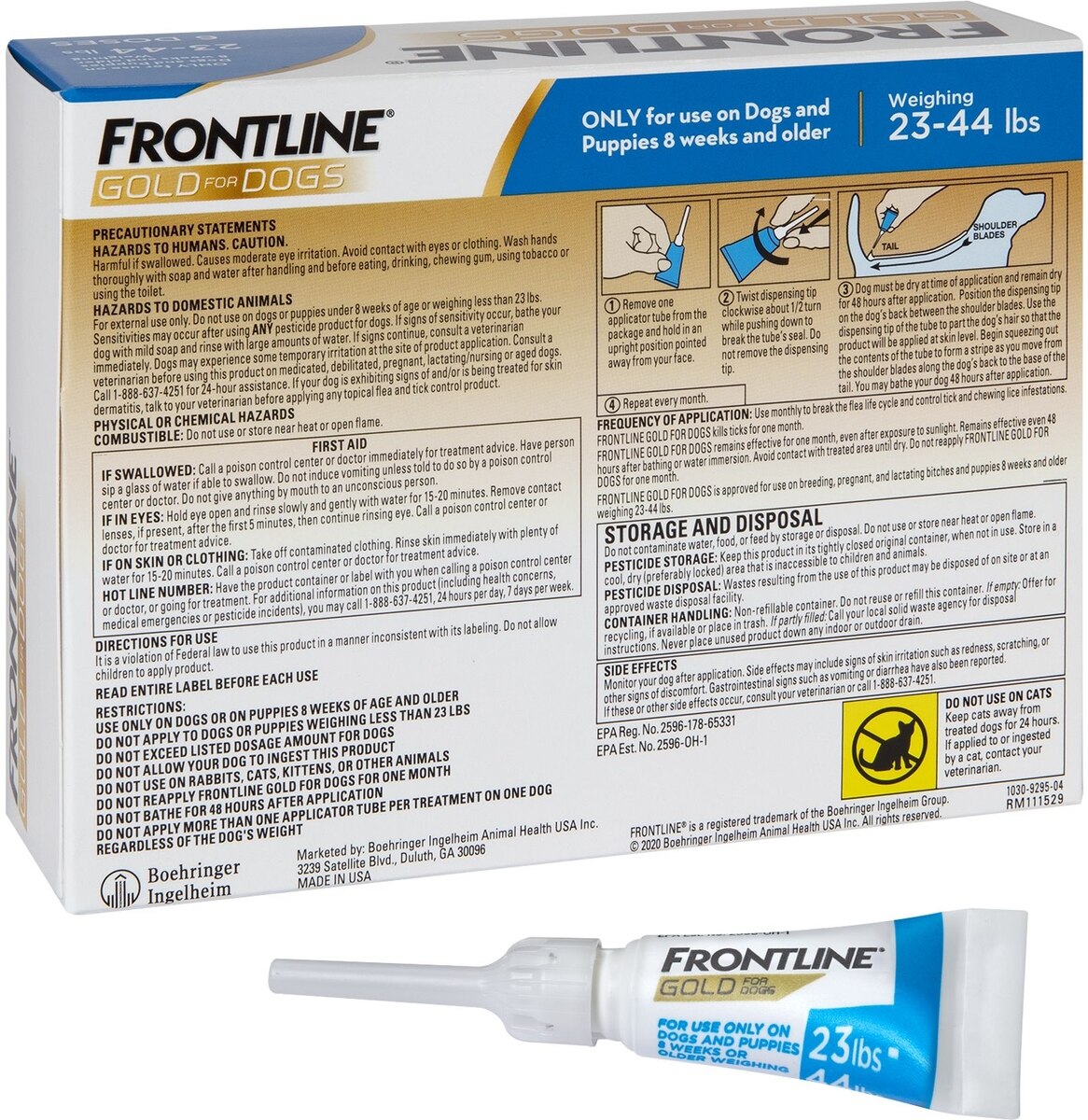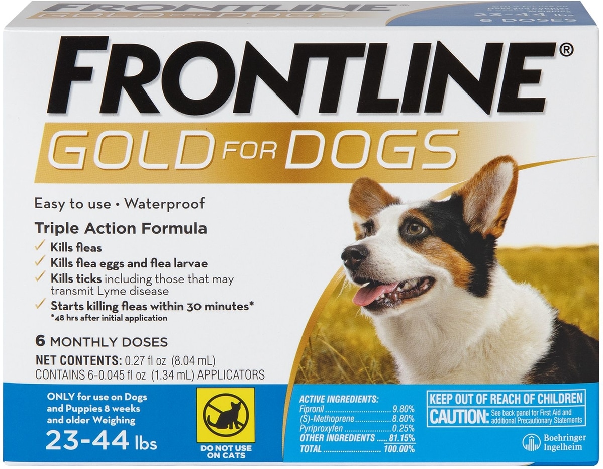Frontline Gold for Dogs Flea & Tick Treatment (Medium Dog, 23-44 lbs.) 6 Doses (Blue Box)