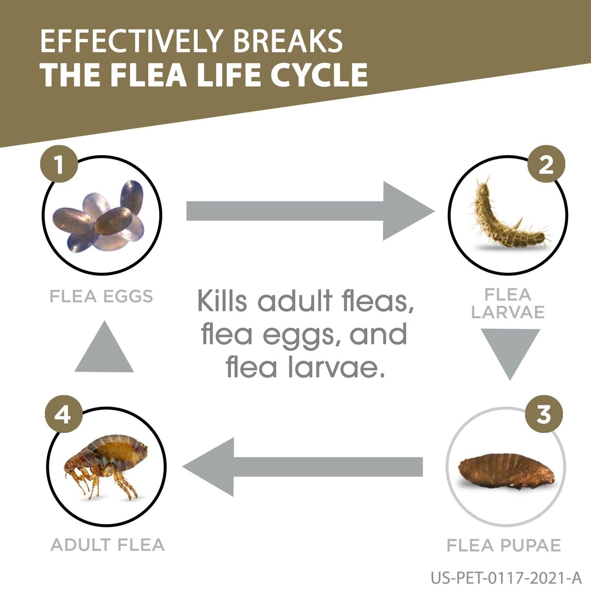 - Helps kill flea eggs and flea larvae to help inhibit future infestations.