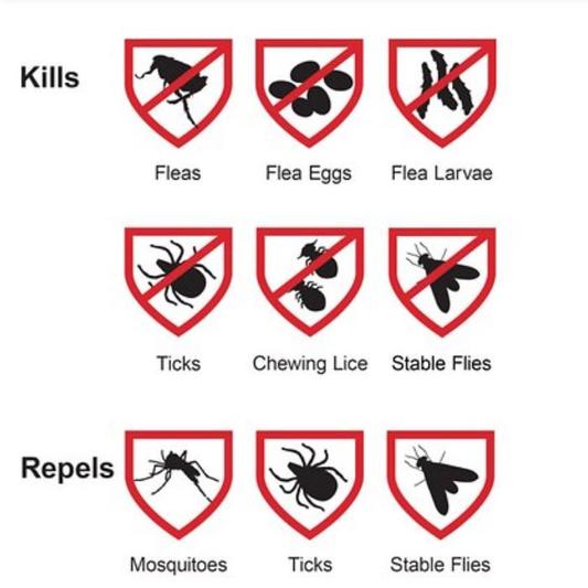 Frontline Shield has three active ingredients (permethrin, pyriproxyfen, and fipronil) that kiII fleas and ticks, inhibit egg and larval development of fleas, and repel ticks that may transmit Lyme disease and mosquitoes that may transmit heartworm disease.