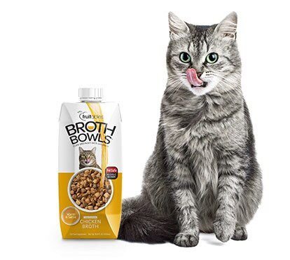 How can you add even more flavor to your cat's dinner? No matter if it's raw food, wet food, dehydrated or just plain kibble, you can make it even better with Fruitables Broth Bowls. This all-natural, savory topper helps keep your cat hydrated with a delicious low-sodium soup. It's made with ingredients you'll recognize but formulated to be safe for pets.