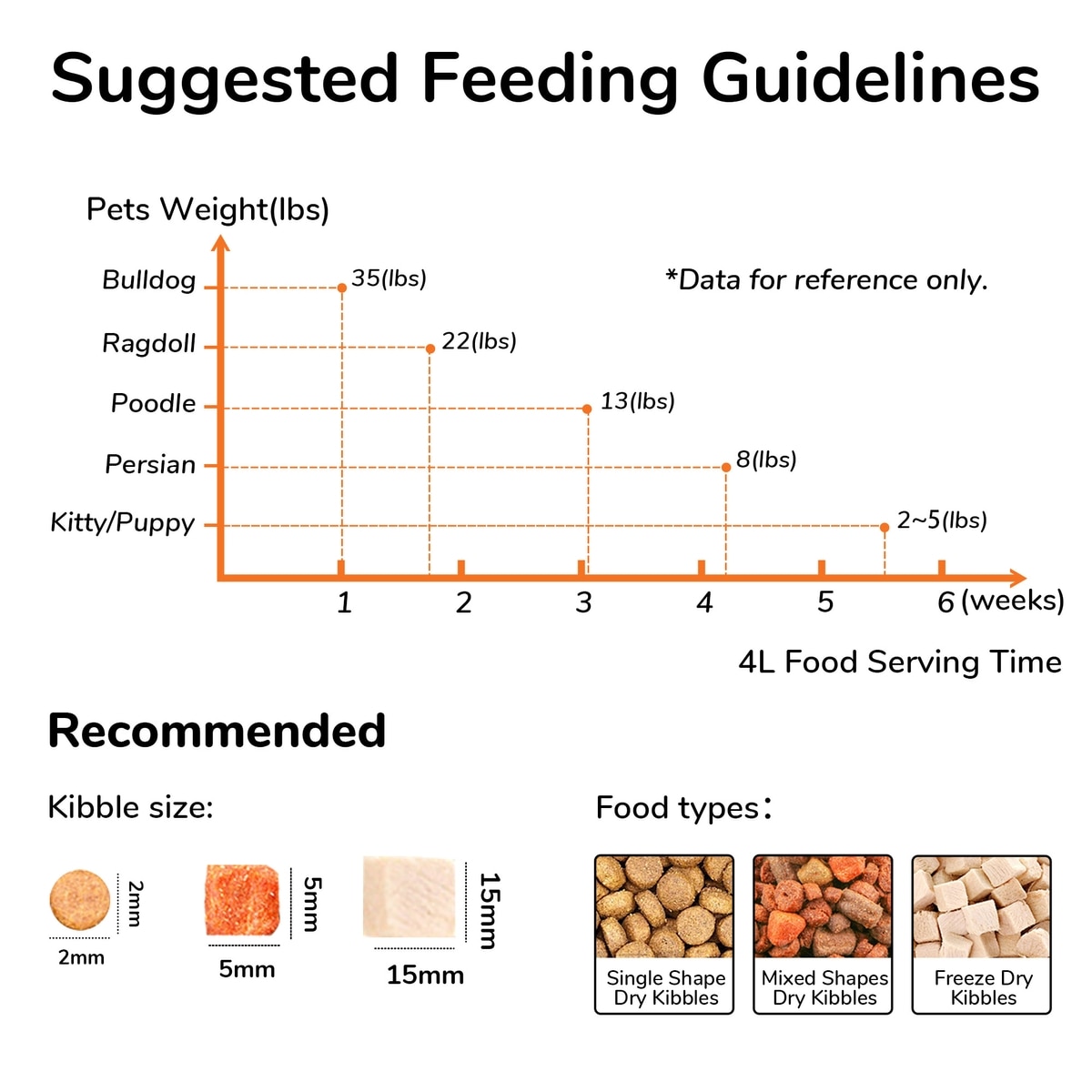 - Built-in desiccant bag helps preserve food freshness and crispness, while the stainless-steel bowls resist bacteria growth and help prevent pet acne and chin discoloration.