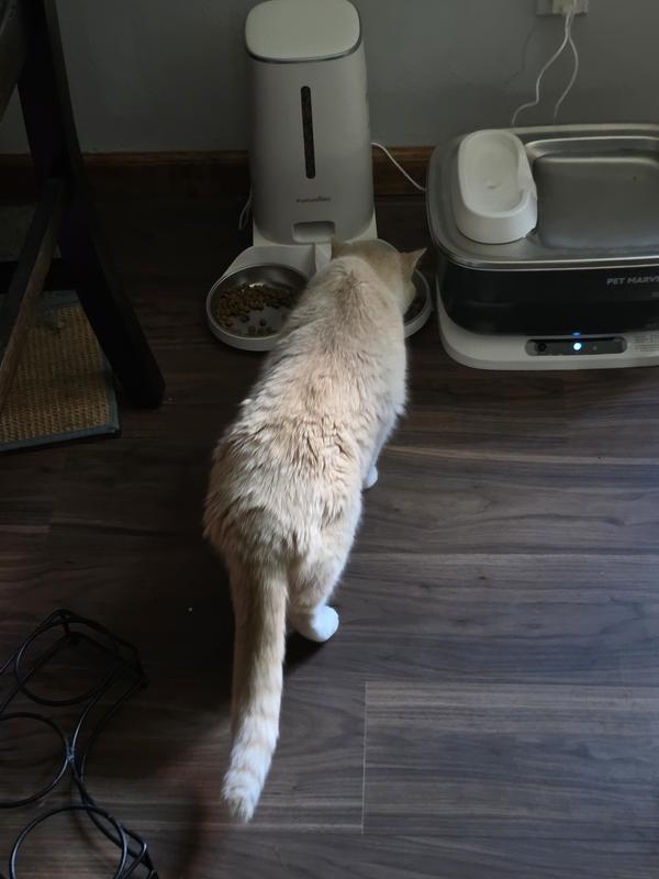 Game changer! The feeder has multiple options that let you pick the amount of food disbursed and when it should be delivered. The food always comes out on time and in the correct amount. It even updated the time during daylight savings time without me having to do a thing. The app is easy to use and will notify you if the food in low and needs a refill. We love it!