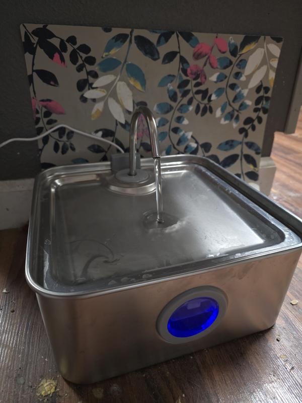This fountain solved all my issues with our three water-guzzling dogs! Setup was a breeze with the easy-to-follow instructions. No more endlessly scrubbing scummy bowls—the recirculating, filtered water stays fresh, and the system works like a charm. The large-capacity, easy-to-clean stainless steel design is incredibly well-built and the functionality is amazing. It's so quiet you'll only hear a gentle trickle. The LED indicator (blue means full!) and the clever filter placement prevents pump clogs. A huge bonus: the filter's design and raised lip mean our dogs still have emergency water access during a short power outage. Plus, the instructions confirm you can rinse and reuse the filters to save money. Highly recommend!