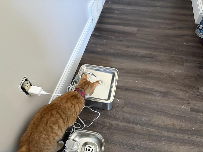 I used the dog water fountain by the dog’s food bowl. She was confused at first, but with some encouragement she was able to figure how to use it. I like that it is very quiet and holds a decent amount of water. What I wish was different is a way to use it without a cord..perhaps battery operated. I’d like to use it outside without a power source.