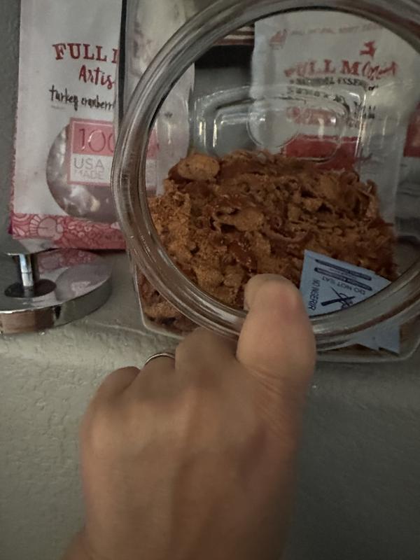 I've been buying these treats for over a year and the quality has been stellar. My recent order was a complete 180 in quality. The treats are disintegrated almost pulverized. I hope the quality can be fixed because my dog has loved these treats so much in the past. Very disappointed with the quality control for Full Moon treats.