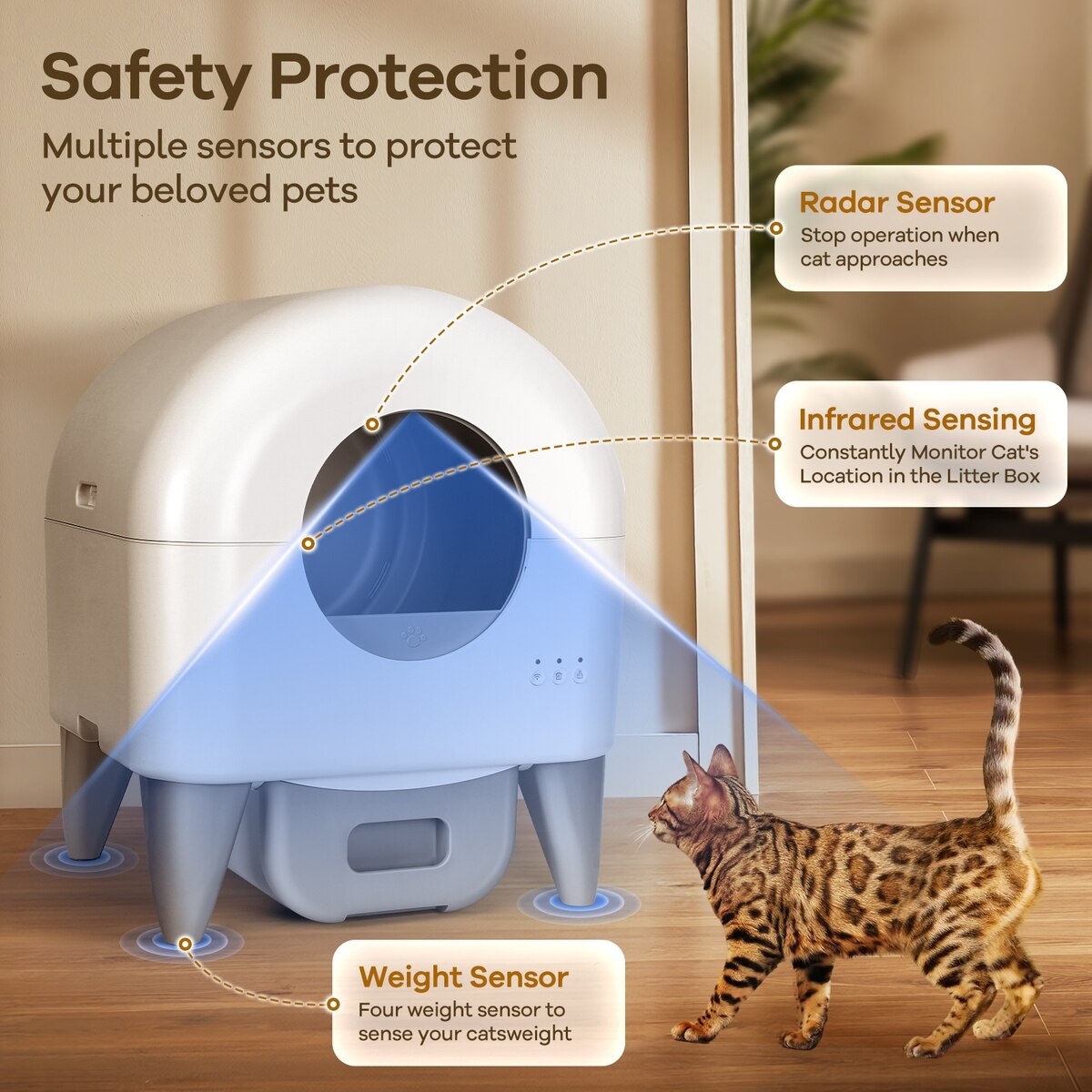 - You can use the app to control auto-cleaning cycles, schedule waste disposal, track litter usage, get real-time alerts for full bins, and help you keep an eye on your BFF’s usage.