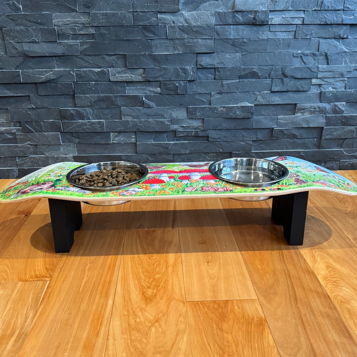 Funky Flies Funky Fungi SkateBowls Stainless Steel Elevated Dog Bowls, 3-cup