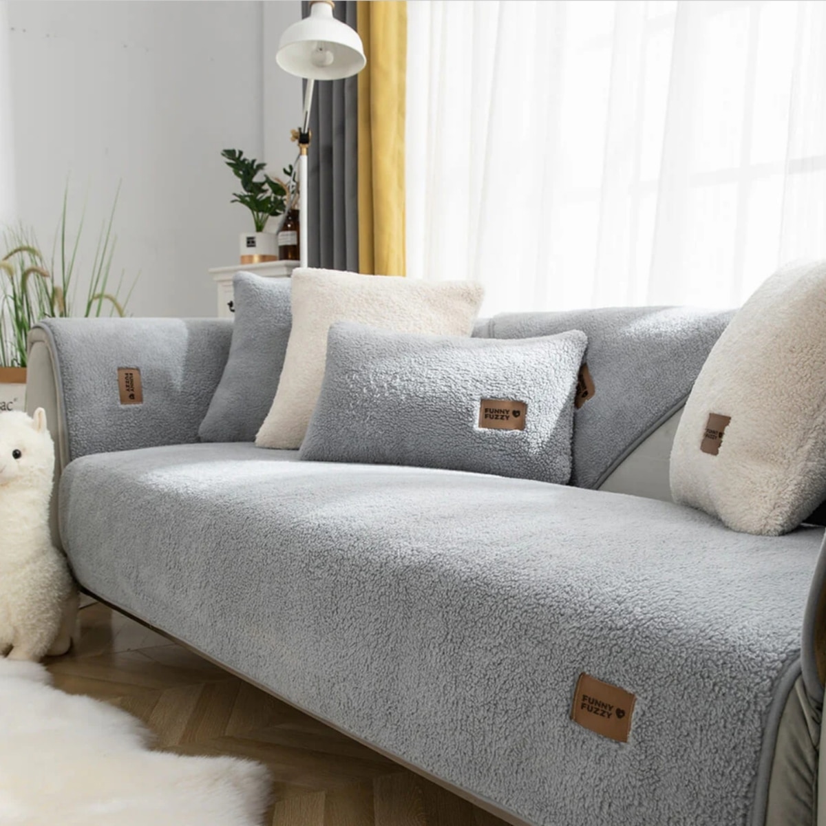 FunnyFuzzy Faux Sherpa Fleece Dog Couch Cover Protector, Grey, 35.4 x 63-in