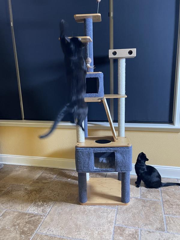 The FurHaven Ascentials Royal Suite Cat Tree is a beautiful and sturdy addition to my home, and my cats, Toodie and Binx, love it! The bamboo and gray design is