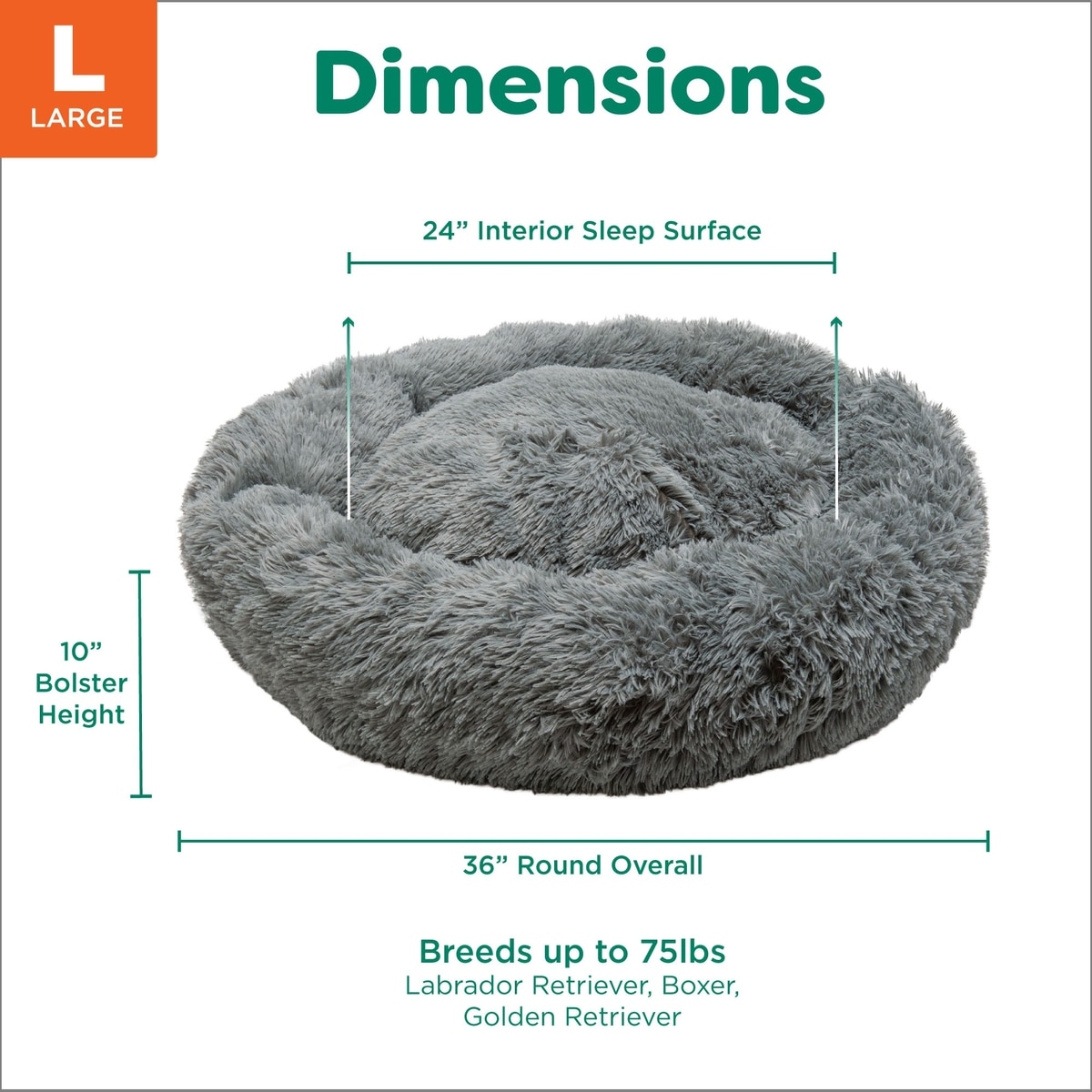 FurHaven Calming Cuddler Long Fur Donut Bolster Dog Bed, Gray, Large