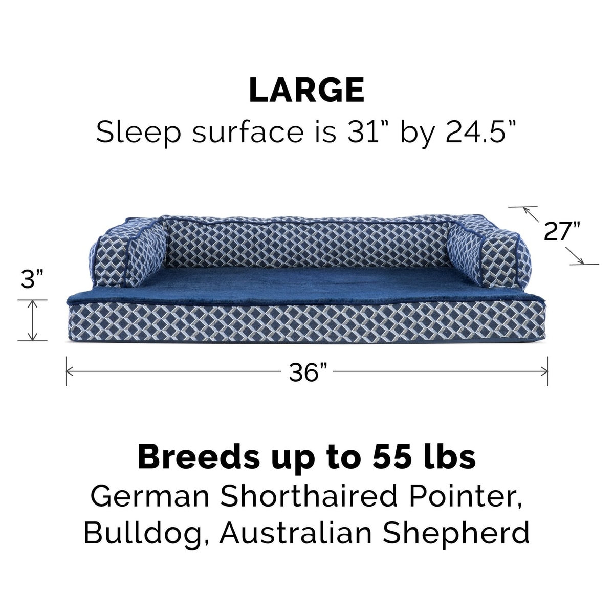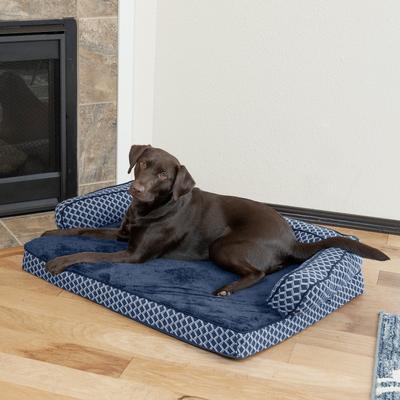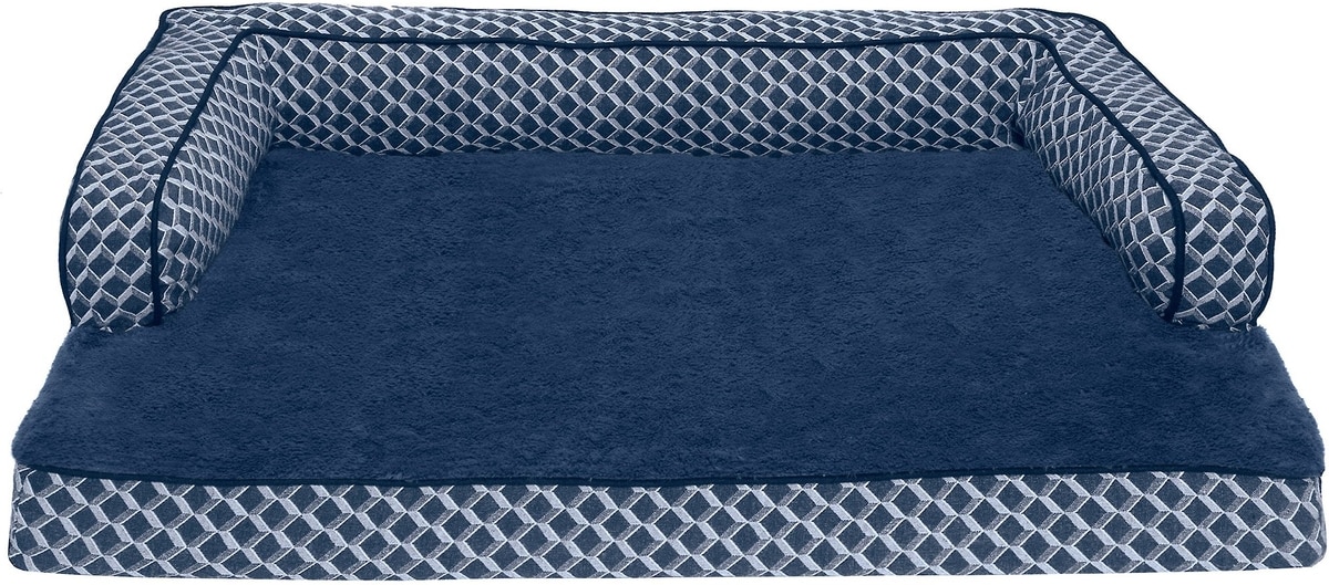 FurHaven Comfy Couch Orthopedic Bolster Dog Bed with Removable Cover, Diamond Blue, Large