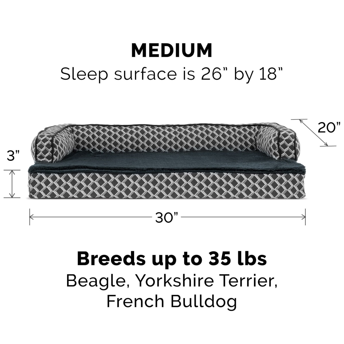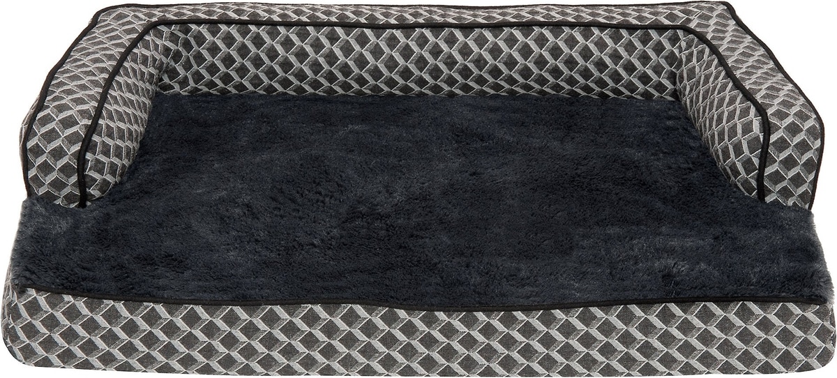 FurHaven Comfy Couch Orthopedic Bolster Dog Bed with Removable Cover, Diamond Gray, Medium