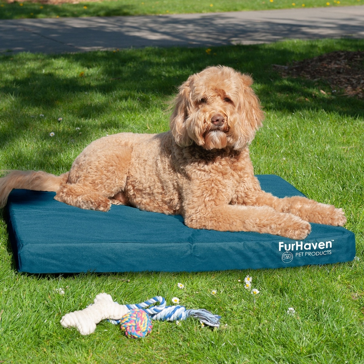 FurHaven Deluxe Oxford Full Support Dog & Cat Bed with Removable Cover, Deep Lagoon, Large