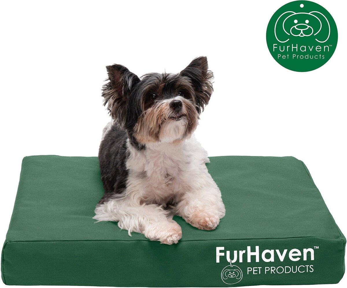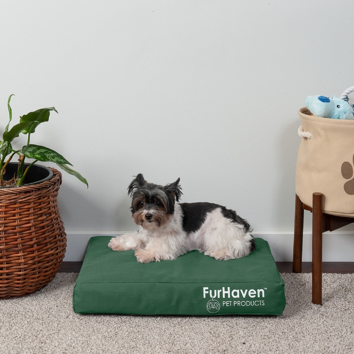 FurHaven Deluxe Oxford Memory Foam Indoor/Outdoor Dog & Cat Bed with Removable Cover, Small, forest
