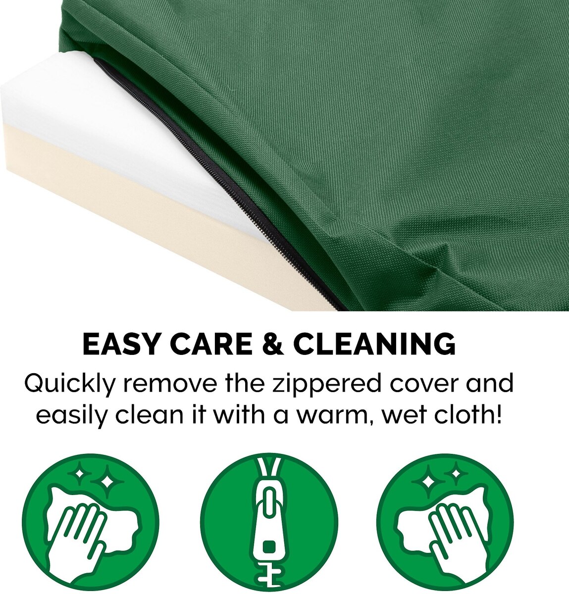 The zippered-style bed cover is easy to remove for hassle-free cleaning, which is especially convenient if you have a pet who always seems to find the best dirt piles and mud puddles. The cover can be hand- or machine-washed with cold water and a gentle detergent. For best results, line dry or tumble dry on a low setting.