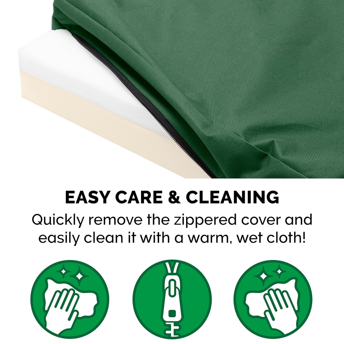 The zippered-style bed cover is easy to remove for hassle-free cleaning, which is especially convenient if you have a pet who always seems to find the best dirt piles and mud puddles. The cover can be hand- or machine-washed with cold water and a gentle detergent. For best results, line dry or tumble dry on a low setting.