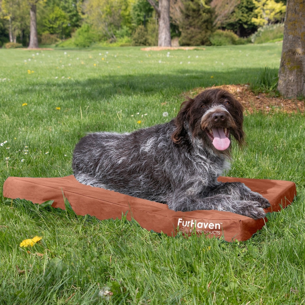 FurHaven Deluxe Oxford Orthopedic Indoor/Outdoor Dog & Cat Bed with Removable Cover, Large, Chestnut