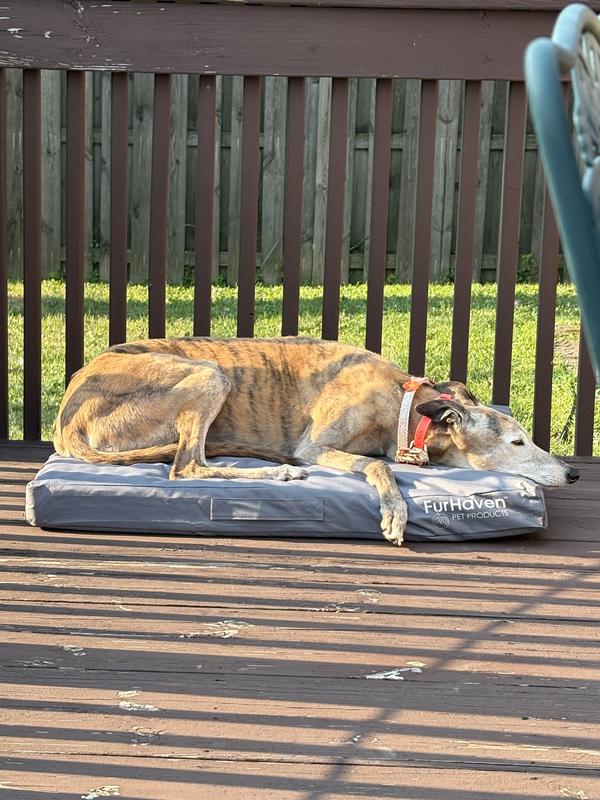 FurHaven Deluxe Oxford Orthopedic Indoor/Outdoor Dog & Cat Bed with Removable Cover, Large, Stone Grey
