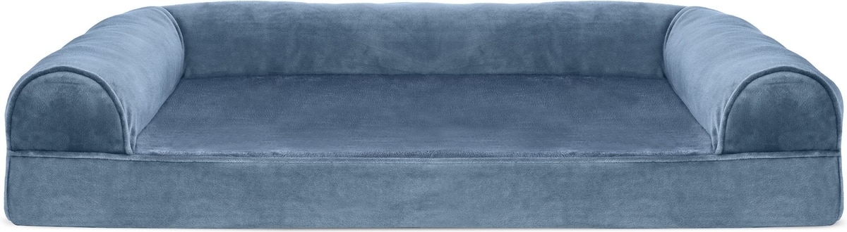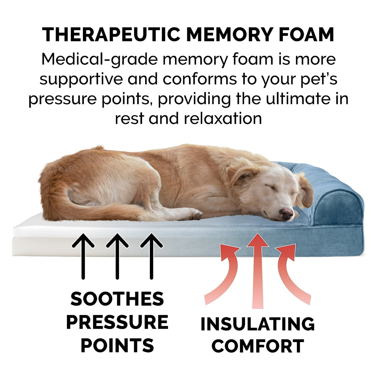 FurHaven Faux Fur Memory Top Bolster Dog Bed with Removable Cover, Harbor Blue, Large
