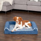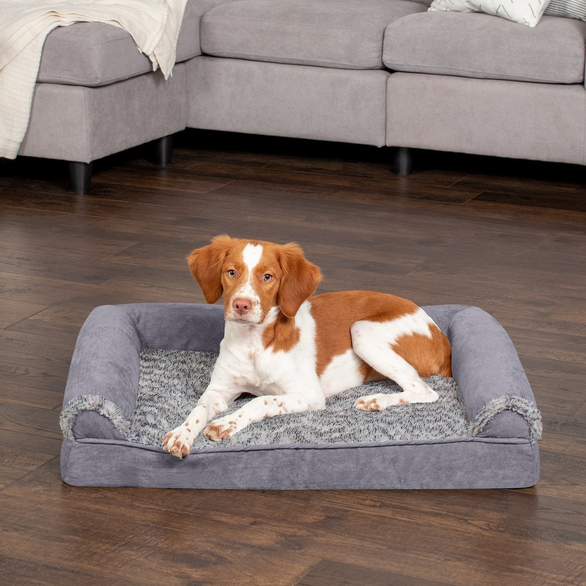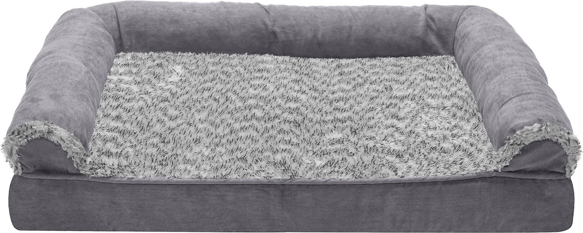 FurHaven Faux Fur & Suede Memory Foam Sofa Dog & Cat Bed, Stone Gray, Medium