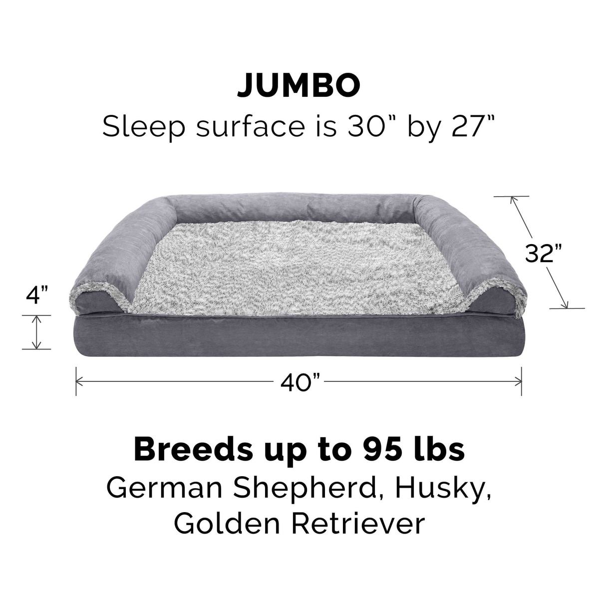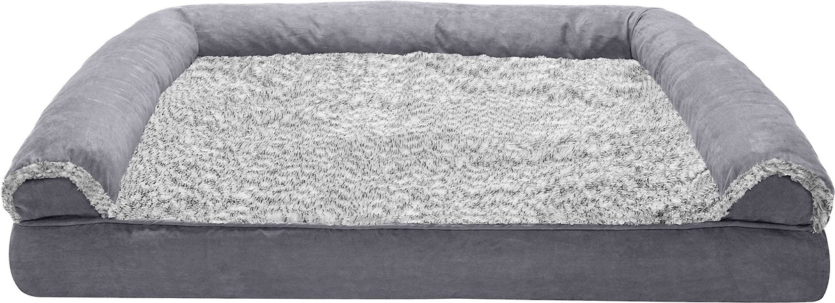 FurHaven Faux Fur & Suede Memory Foam Sofa Dog & Cat Bed, Stone Gray, Jumbo