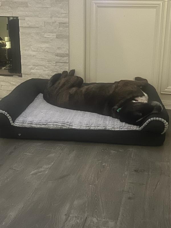 FurHaven Luxe Fur & Performance Linen Cooling Gel Top Sofa Cat & Dog Bed with Removable Cover, Charcoal, Jumbo