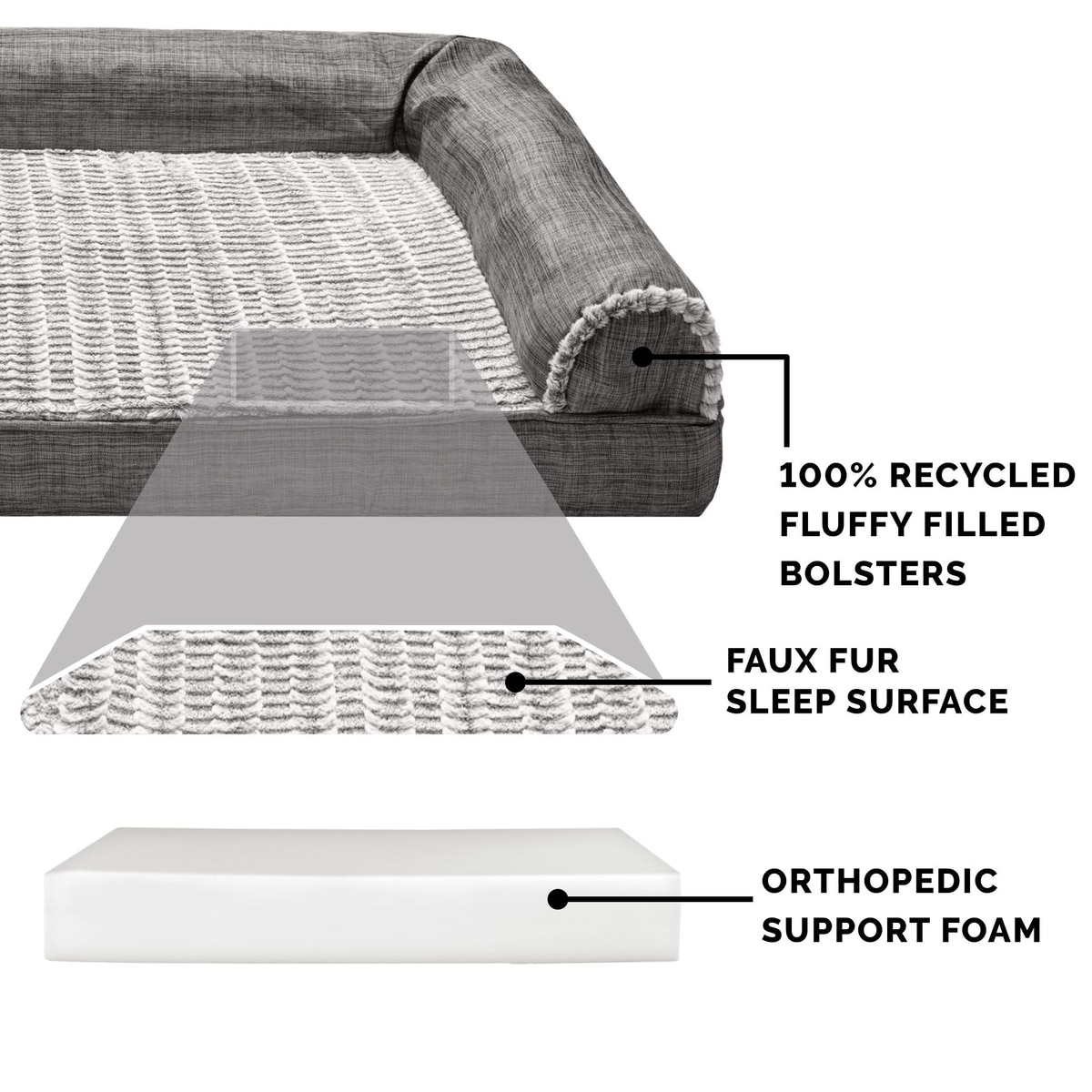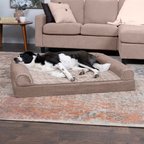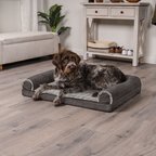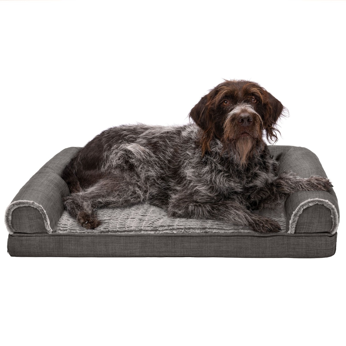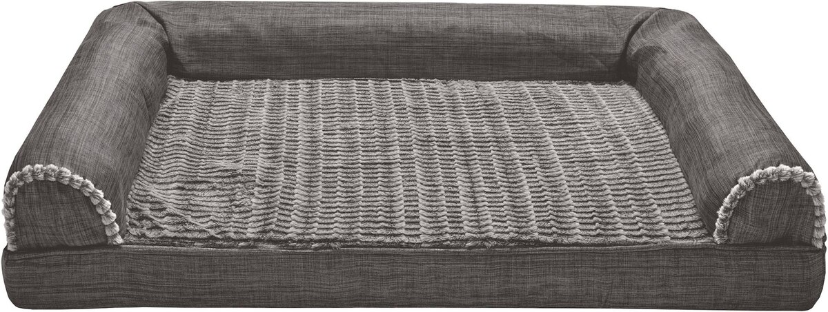 FurHaven Luxe Fur & Performance Linen Orthopedic Cat & Dog Bed with Removable Cover, Charcoal, Jumbo