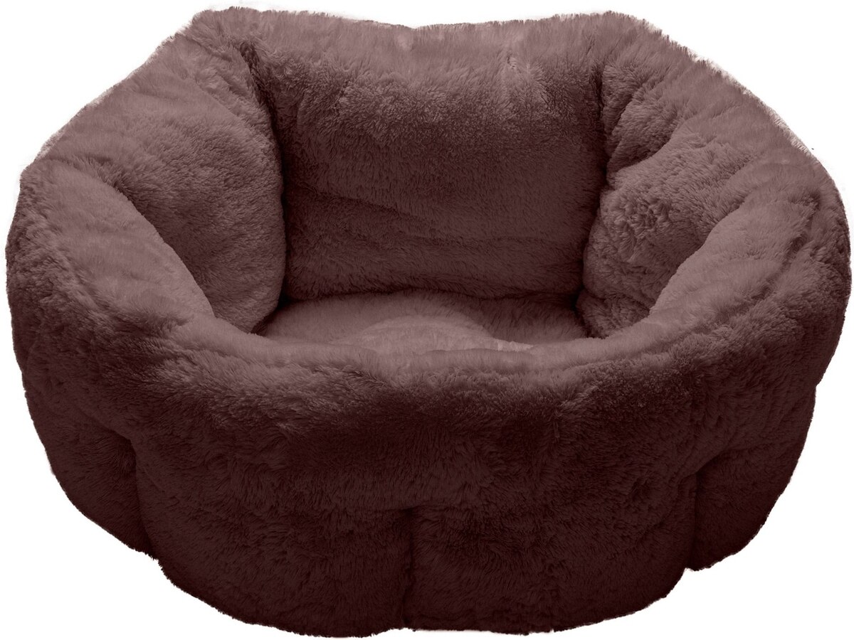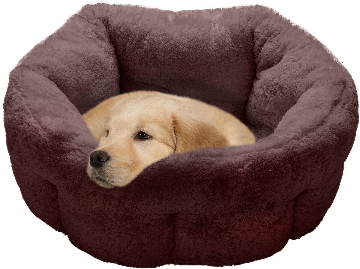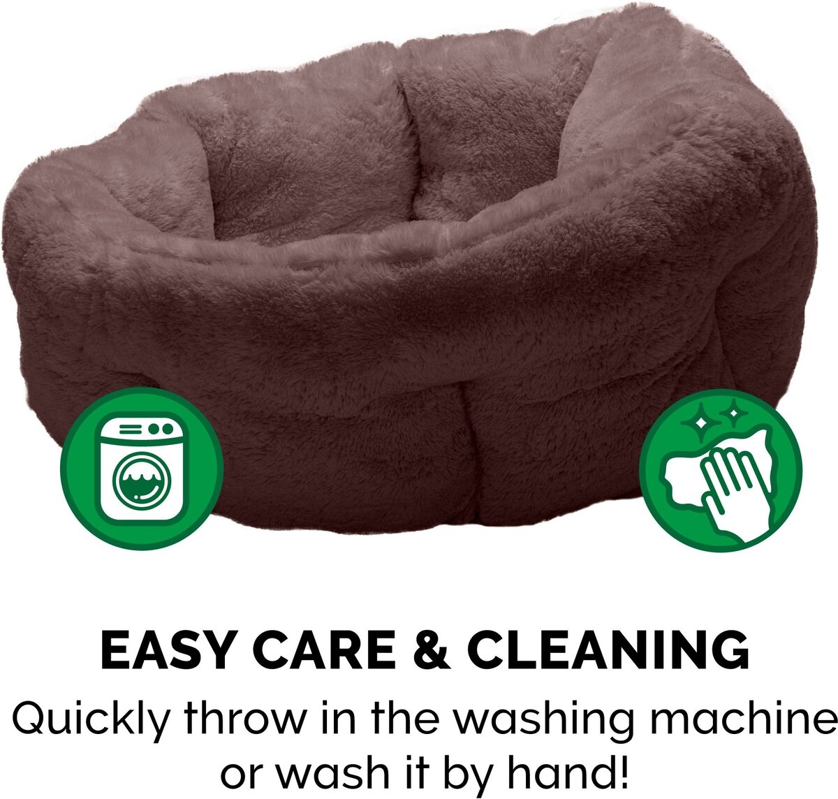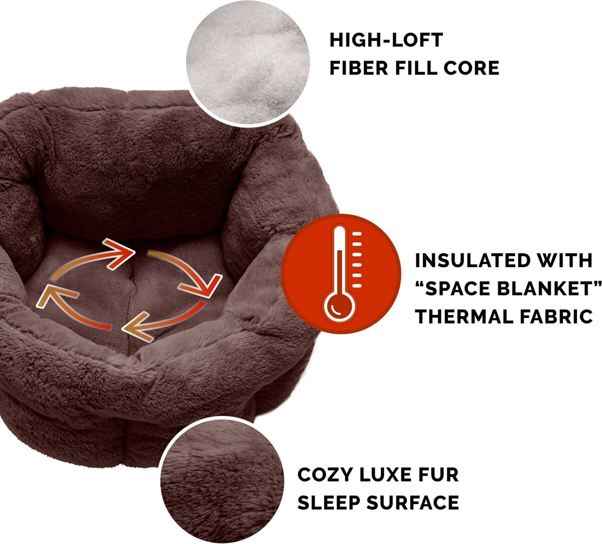 FurHaven Luxury Faux Fur Self-Warming Hi-Lo Donut Cat & Dog Bed, Sable Brown, Medium