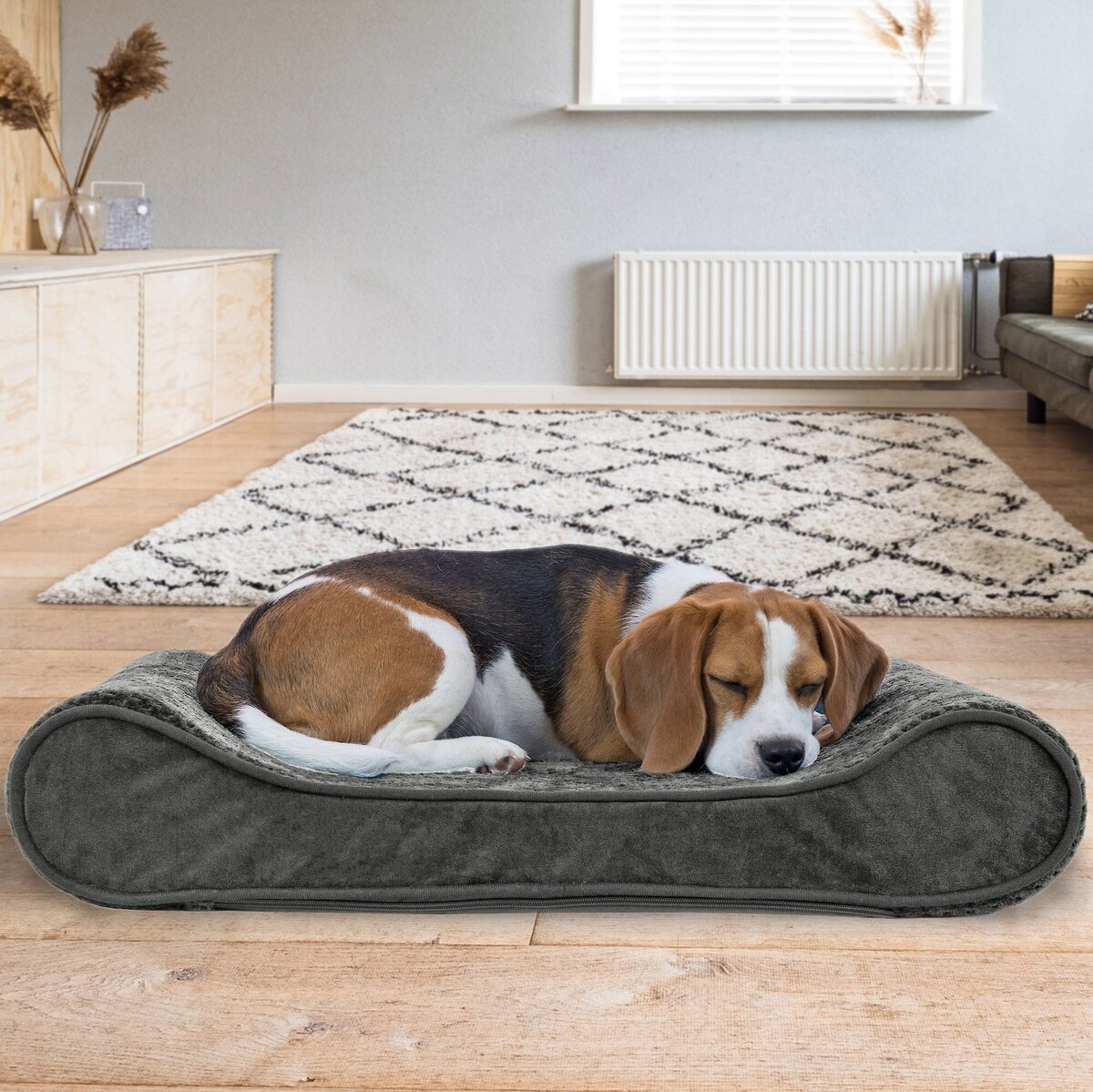 FurHaven Minky Plush Luxe Lounger Orthopedic Cat & Dog Bed with Removable Cover, Gray, Medium