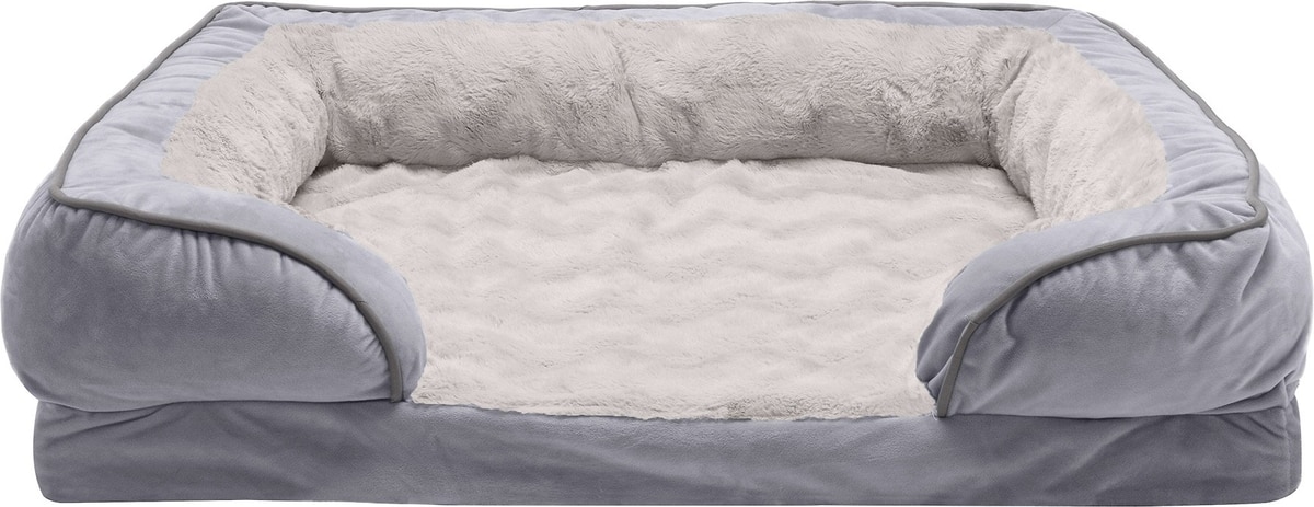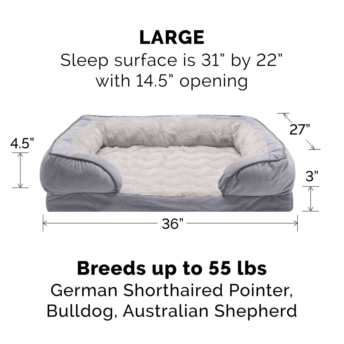 FurHaven Perfect Comfort Velvet Waves Full Support Sofa Dog & Cat Bed, Granite Gray, Large