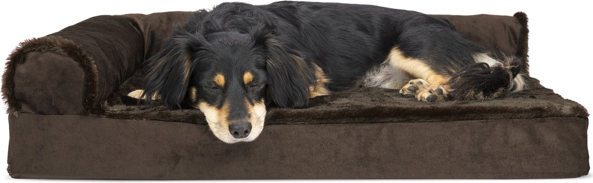 FurHaven Plush Deluxe Chaise Orthopedic Cat & Dog Bed with Removable Cover, Sable Brown, Medium