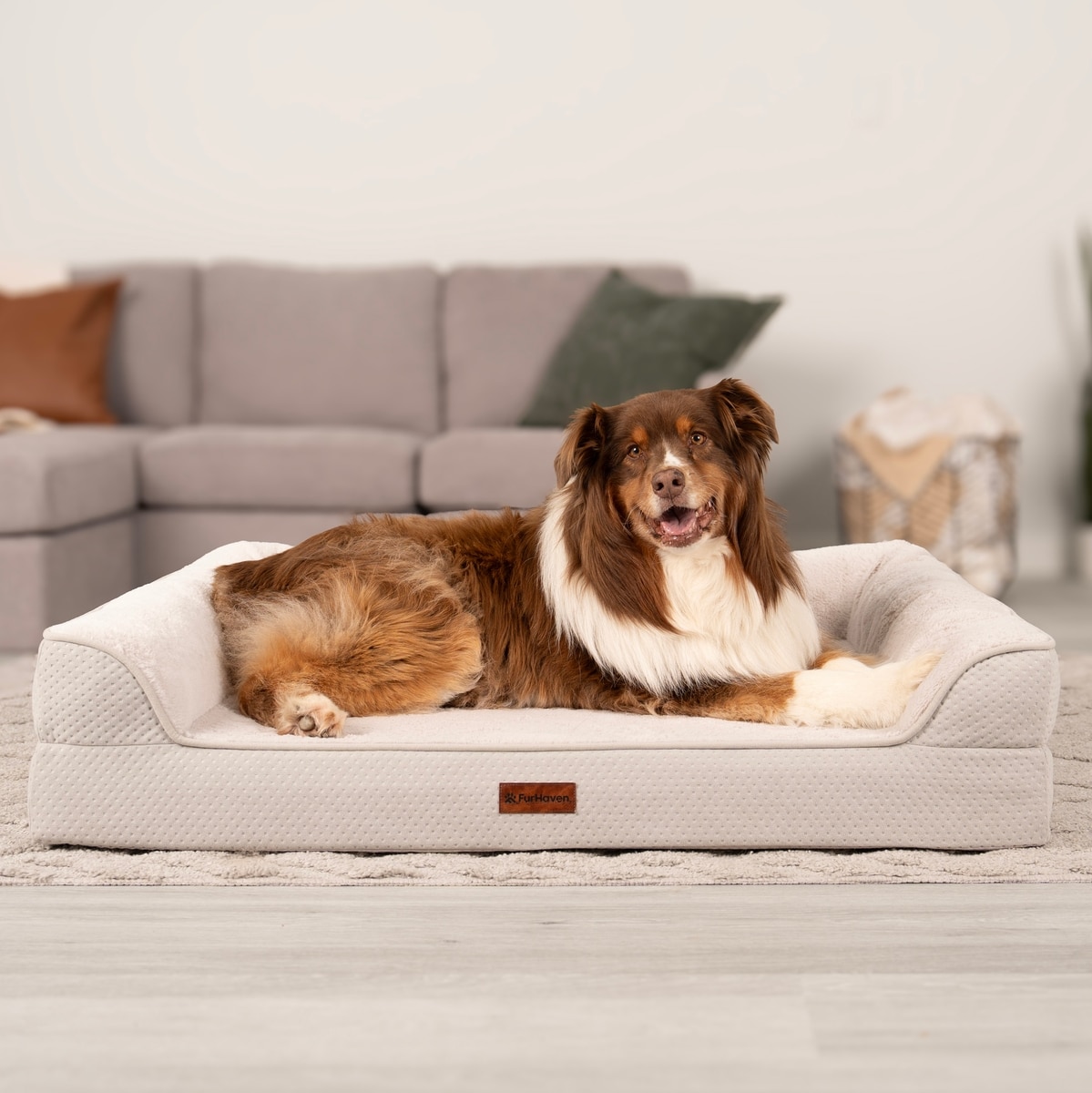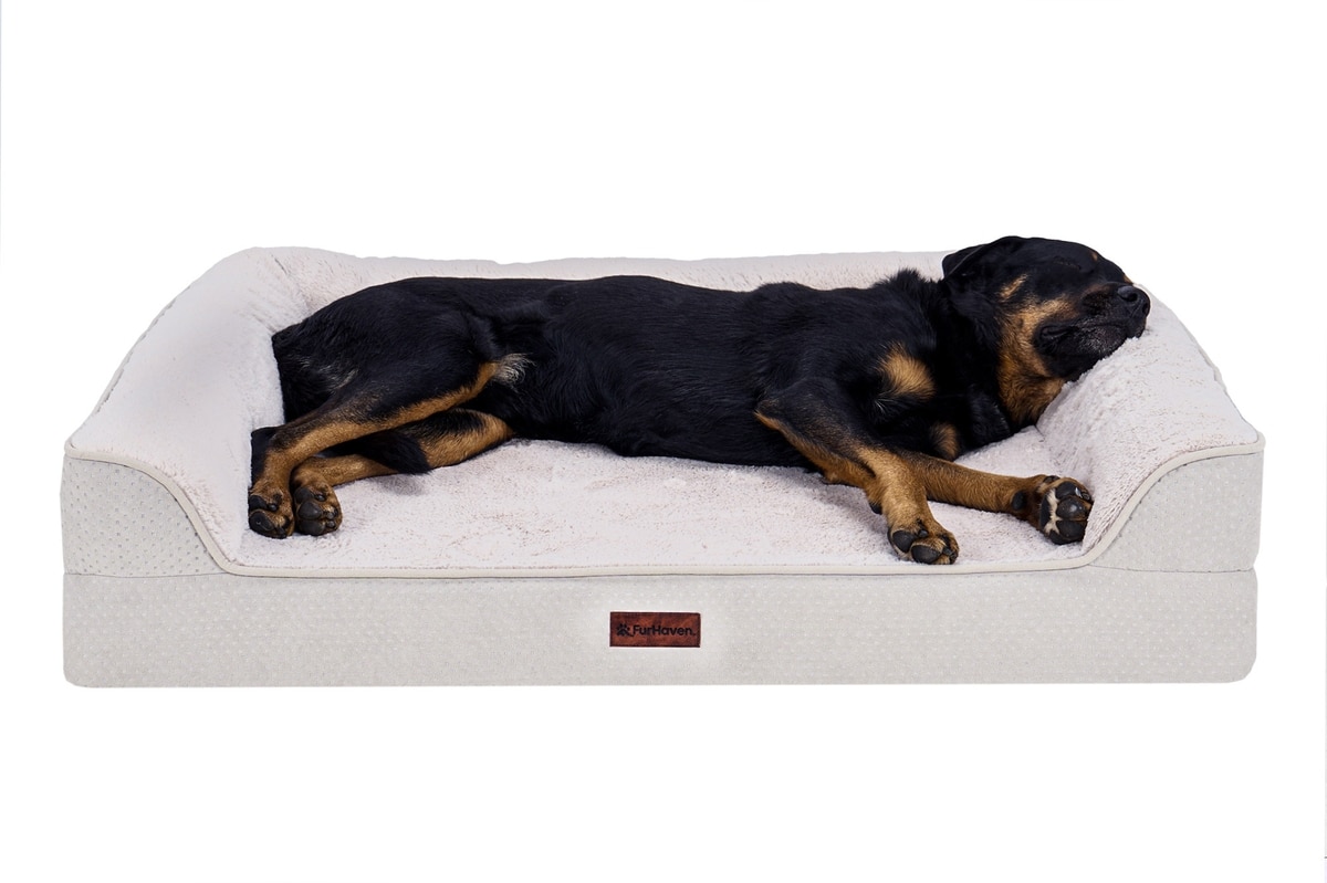 FurHaven Plush & Embossed Velvet Dreamer Sofa Orthopedic Foam Dog Bed, Clay, Jumbo